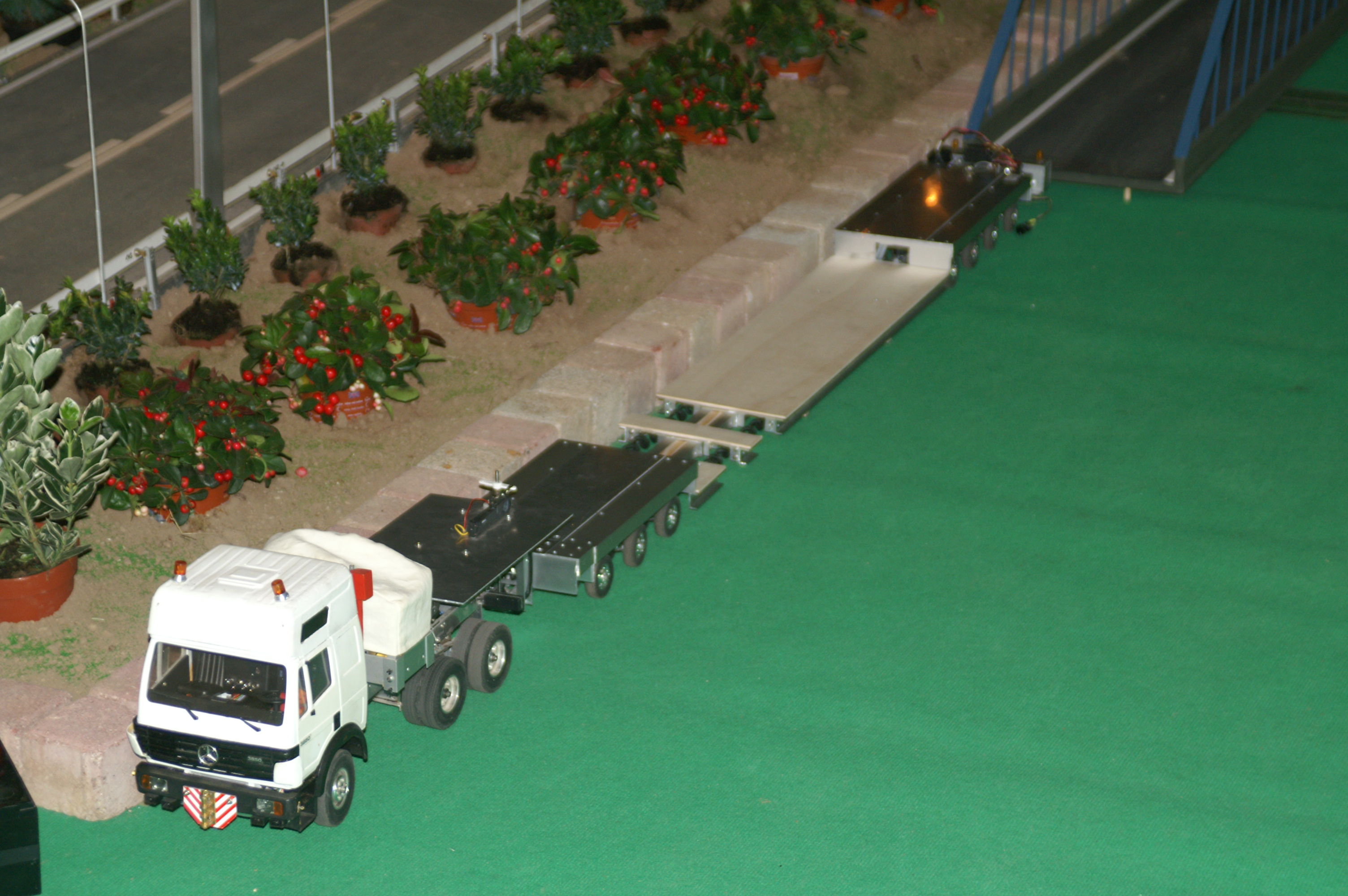 | Elektronik: | – AMO von Servonaut – Stromversorgung durch Zugmaschine – Rundumleuchte von Leimbach – Übetragung der Lenkung für hinteres Modul durch Potentiometer (Steuerung durch Elektronik von …-Elektronik – Selbstbau Spiralkabel im ausziehbaren Modul |